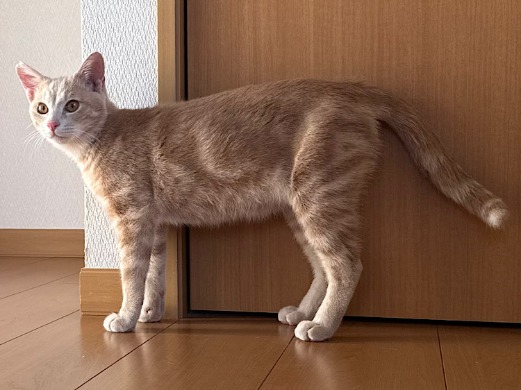 人が大好きで甘えん坊の優しい子です。玩具を見つけると表情が凛として、夢中になって遊ぶ小さなハンターに変身します。夢中になっている時でも思いやりを忘れず、他の猫ちゃんに玩具を譲ってあげたり、私たちのところへ持ってきて渡してくれます。穏やかなとても可愛らしい猫です。
