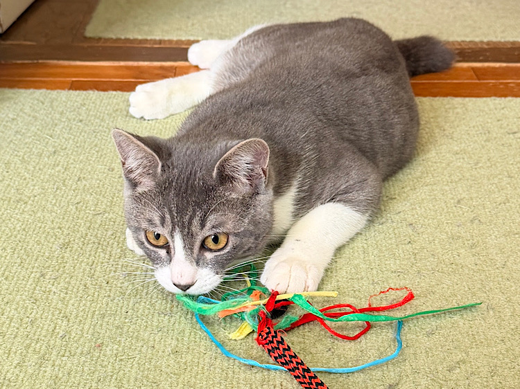 人の動きが怖く人との接し方も分からず、でもきっと本当は甘えん坊。毎日少しずつ出来る事が増えています。おもちゃも猫もご飯もチュール大好き❤