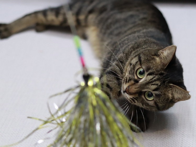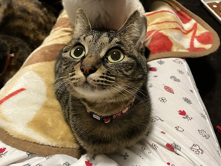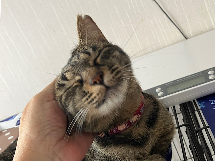気になったことにすぐに飛びつくタイプ。撫でてもらうのが大好きな甘えん坊で、座っていると自分からくっついてくる。おやつはドライフード系が好き。先住猫さんがいなくても大丈夫だけど、いた方が安心して馴れるのは早いと思われる。